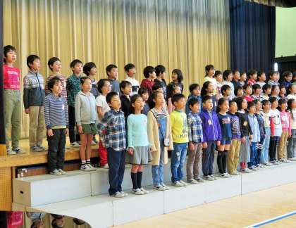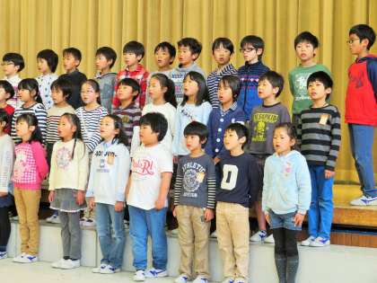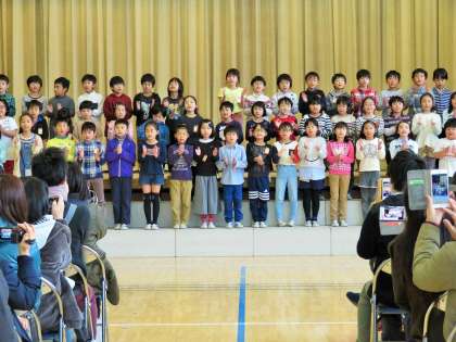 今日は3月の土曜授業日です。2年生は「音楽発表会」を行いました。この1年間、音楽の授業で勉強してきた歌を発表しました。「まくをあけよう」「こいぬのビンゴ」「いるかは ざんぶらこ」「山のポルカ」「夕やけ こやけ」などの歌を歌いました。