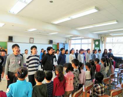 どのクラスも温かく迎えてくれて、特に6年生の音楽では特別大サービスで、「桜の下で」を大きな声で歌ってくれたので園児の皆さんも大喜びでした。