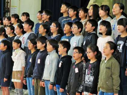 6年生は「仰げば尊し」と、砧小学校ならではの「桜の下で」を歌います。