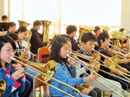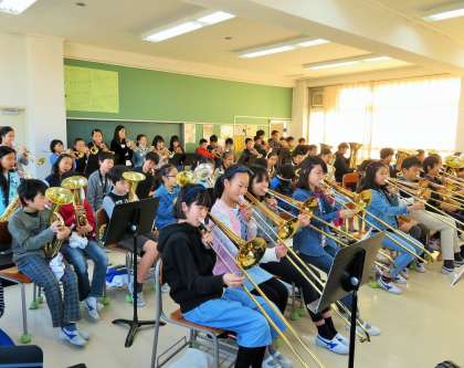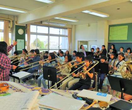 5年生は、鼓笛の朝練習を7時45分から連日のように取り組んでいます。今日は、「ザッツ ア プレンティ」を、楽譜で曲の流れをしっかり確認した後、練習をしました。