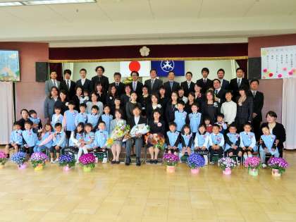 今日は砧幼稚園、第45回修了式が行われました。多くの方々に見守られる中、子どもたちが入場しました。そして一人一人に修了証書が手渡されました。返事、動作、どれをとっても立派で、砧幼稚園の修了生にふさわしい態度でした。
