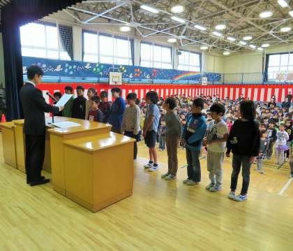 今日は、1年生から5年生までの修了式です。砧小学校の子どもたちは、この1年間、心も体もぐんと成長しました。進級を目前に、子どもたちの自覚が一気に高まっています。