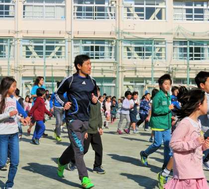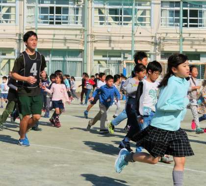 多くの先生が一緒に走っているので、子どもたちも嬉しそうです。