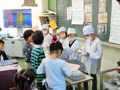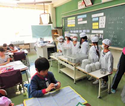 昨日から、私も子どもたちも楽しみにしている給食が始まりました。1年生は初めての給食ですが、配膳も上手で、静かに順番を待つこともできていました。
