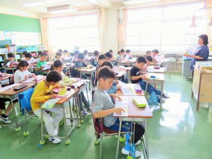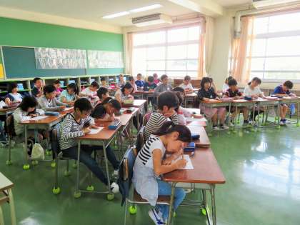 今年度砧小学校では、基礎学力の定着に向けて、始業前の朝学習に週3回取り組んでいきます。子どもたちは漢字ドリル計算プリントやに向かい、静かに集中して取り組んでいました。