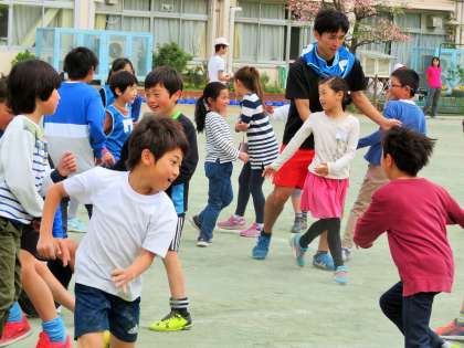 砧小学校の先生は、本当によく子どもたちと遊んでいます。