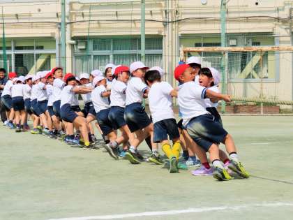 「心を一つに」することの大切さに気付いた子どもたちは、再度、綱引きに挑戦です!