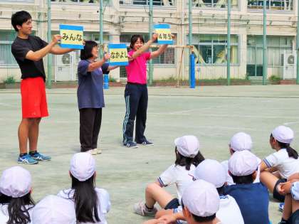 最後に、心を一つにした4年生は、今日の授業のめあて「みんな なかよく 4年生」を確認しました。