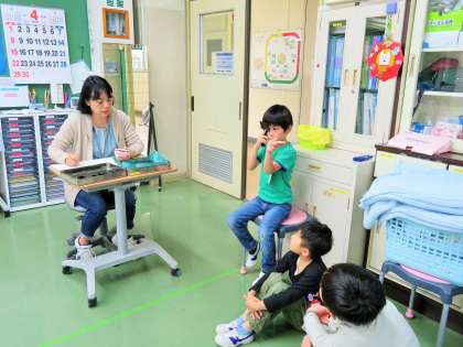 初めてづくしの1年生ですが、今日は視力検査を行いました。廊下で静かに待ち、保健室でも自分の順番を上手に待つことができています。1年生は、新たな環境で頑張っています!
