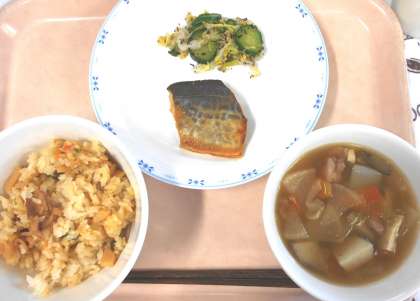 今日の主食は、<たけのこごはん>です。たけのこは、春を代表する食材です。子どもたちには、ぜひ食べ物から季節を感じられるようになってほしいと思います。