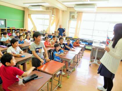 オーストラリア出身のミッシェル先生が、今年度砧小学校のALTです。自己紹介をしたり、クイズをしたり、楽しく英語と親しみました。