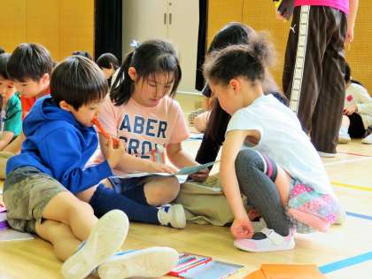 今日は、1年生と2年生が、5月1日の学校探検に向けて、はじめましての会(顔合わせの会)を行いました。2年生が中心となり、メンバーで自己紹介をしたり、校舎内の地図を見せて説明をしたりしました。