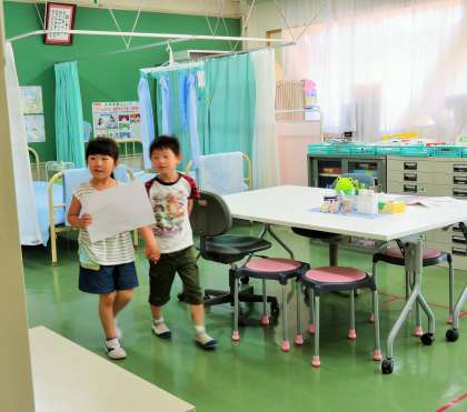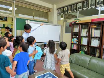 「ここが校長室で、校長先生がお仕事をしています!」などと、わかりやすく説明をしていました。2年生が良きお手本となって、入室するときには「失礼します」、出口では「ありがとうございました!」とあいさつをしているので、1年生にもとってもよい学習となりました。