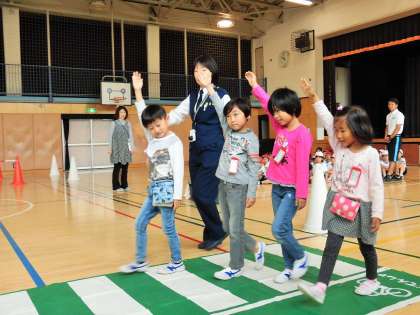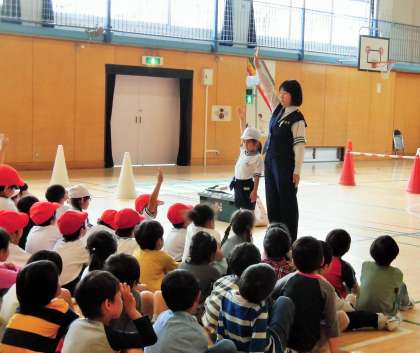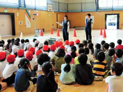 昨日、1年生の交通安全教室がありました。成城警察署の方々が、横断歩道の渡り方やT字路での安全確認の方法、安全な歩き方など、わかりやすく説明していただきました。子どもたちは熱心に話を聞くことができました。