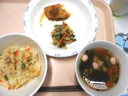 砧小学校が、笑顔あふれる素敵な学校としていつまでもあり続けてほしいという願いをこめて、今日は<鯛飯>を作りました。焼いた鯛と甘く煮た具、鯛のあらでとっただし汁をご飯に混ぜ合わせました。子どもたち、よく食べていました。