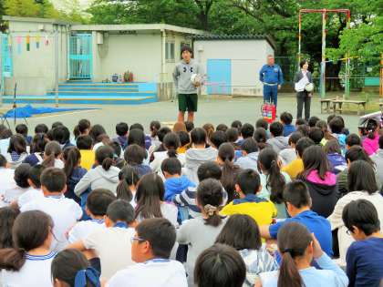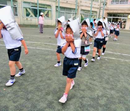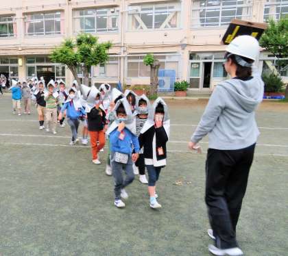 4月の避難訓練と同様にハンカチで口と鼻を押さえる児童がほとんどでした。ハンカチは、火災のときに煙を吸い込まないためだけでなく、これからの季節は、特に汗をかいたり洗った手を拭いたりします。ハンカチを必ず持たせるようよろしくお願いいたします。