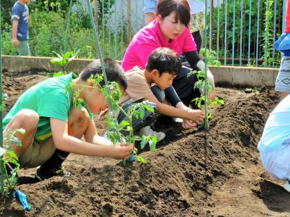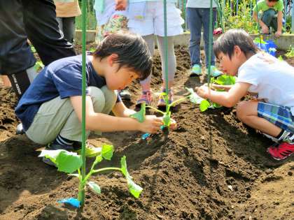 これから、毎日の水やりが始まります。たくさんの野菜が実ることを楽しみにしながら、子どもたちが協力して、野菜を育てていきます。