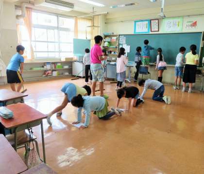 今年度の重点目標の一つとしての実践ですが、古い校舎をいつまでもピカピカにして使いたいと思っています。