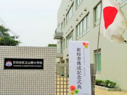 今日は、「砧の学び舎」山野小学校の新校舎落成記念式典がありました。校長先生や区長さんからの式辞をはじめ、多くの祝辞がありました。