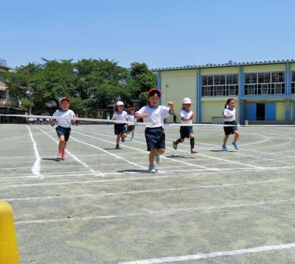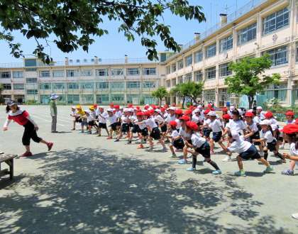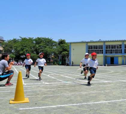 1年生は運動会に向けて50m走の練習です。スタート動作と、ゴールテープを走り抜けることを目標に一生懸命がんばりました。ゴールテープの前で減速してしまう子が何人かいました。今後も練習をしていきます。