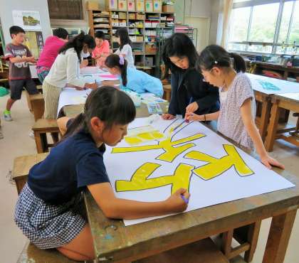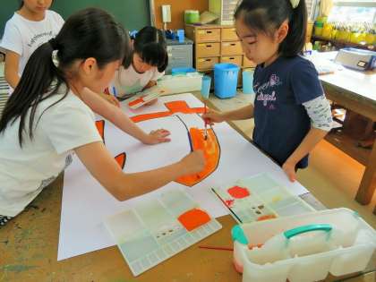 今日は、運動会に向けての係活動がありました。「準備・装飾係」も係の一つとして運動会のスローガン『輝け 笑顔!砧っこ魂!』づくりに取り組みました。全校の子どもたちの思いを、一人一人が丁寧に描いていました。