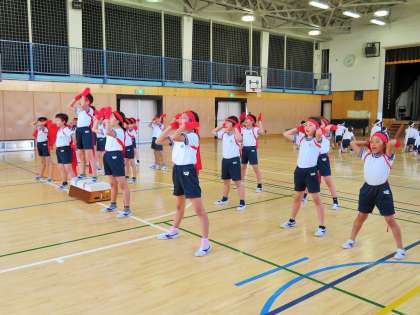 明日は、7時45分から校庭で行います。ご理解とご協力に感謝申し上げます。