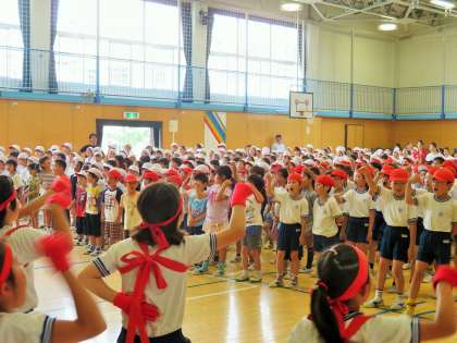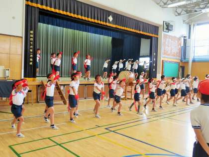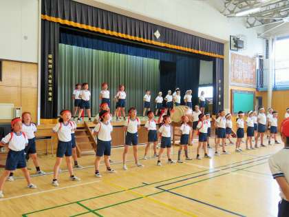次に、運動会の歌の練習です。4〜6年生の応援団がお手本となって歌ってから開始しました。