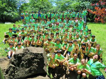 「ファンファーレ」「キングスコート」「ザッツ・ア・プレンティ」「校歌」の順に4曲を演奏しました。