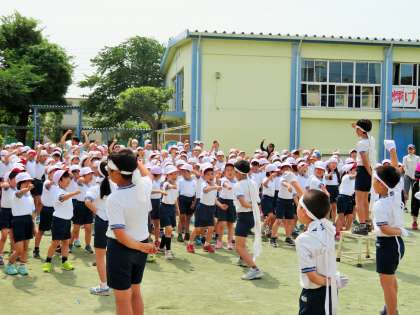 午前の応援練習ですが、4・5・6年生の応援団は、今日も気合いが全開です。