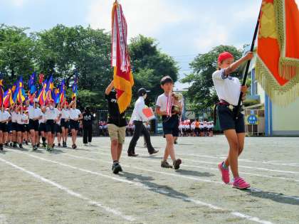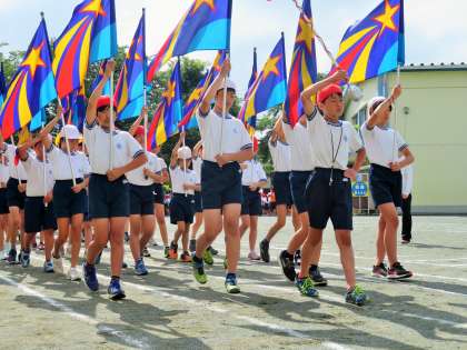 今日は、運動会全体練習3日目、最終回です。入場行進、児童座席の確認、閉会式の練習をしました。