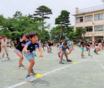 いよいよ今日は運動会のリハーサルです。3・4年生の表現は、「砧ソーラン」です。「腰を低くすること」「動きをそろえること」「大きく踊ること」「大きな声を出すこと」の4つを意識して練習に取り組んできました。