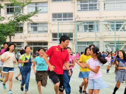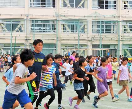多くの先生が一緒に走っているので、子どもたちはとっても楽しそうです!