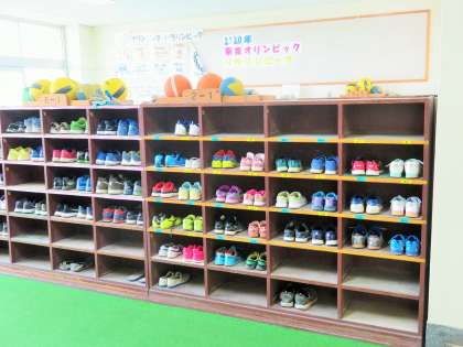 朝遊び、朝ランニング後の下駄箱です。靴のかかと、履き物がきちんと整っています。子どもたちの「心が整っている」からこその姿です。