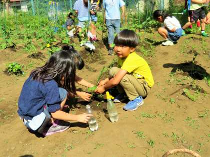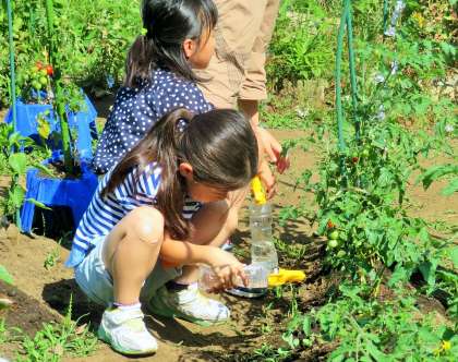 「もう、○○さんのミニトマトは実がついているよ」と教えてくれる子もいます。