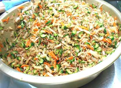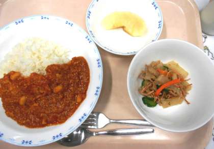 今日の<かむかむサラダ>には、するめいかやごぼうを入れました。かむことを意識して、よくかんで食べている子も多かったです。