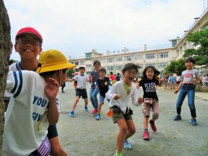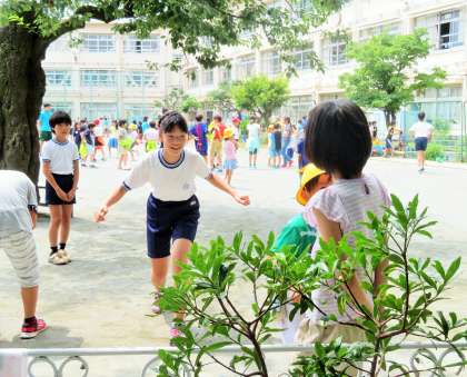 班員の確認をして、さぁ、遊びのスタートです!今日は「だるまさんが転んだ!」で遊んでいる班が多くありました。