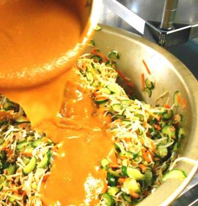 今日は、音楽朝会がありました。子どもたちの歌声が体育館に響き渡り、とても素敵でした。給食室では、<ドレミソ♪サラダ>を作りました。味付けはみそ入りの特製ドレッシングです。どの学級も、よく食べていました。歌う姿勢も立派でしたが、もりもり食べる姿も素敵でした。