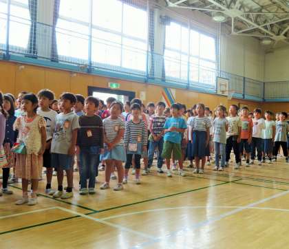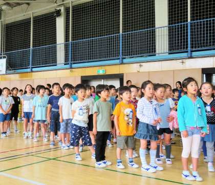 雨ふりの季節も好きになれる歌を歌い、今日もさわやかに1日のスタートを切りました。大きな歌声が体育館に響いていました!