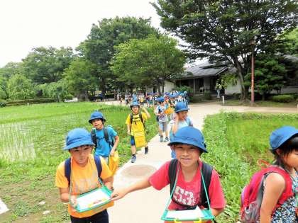 昨日、3年生は次大夫掘公園に行き、自分のお気に入りの場所を見つけてきました。世田谷の農村風景と昔ながらの小川、そして水路に沿って、当時の古民家や水田の様子を見学して来ました。