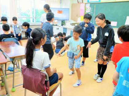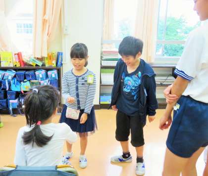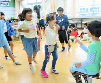 ジャンケンをして王様になる「王様ジャンケン」で遊んでいる様子です。