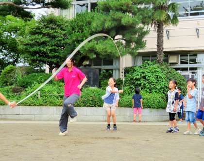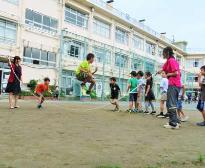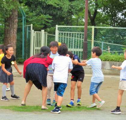担任の先生や英語講師のミッシェル先生も一緒に遊んでいるので、子どもたちは大喜びです!