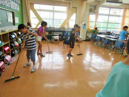 砧小学校の毎週金曜日は「自問清掃」です。自らに問いかけながら、3つの心を磨いています。