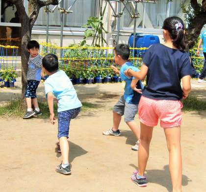 昨日も「だるまさんが転んだ」をして遊んでいる班が多くありました。