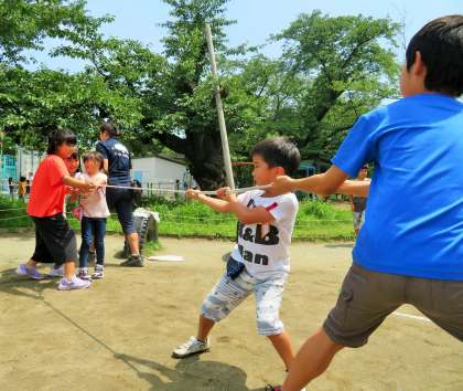 「綱引き」「リレー」「縄跳び」をして、楽しく遊んでいます!