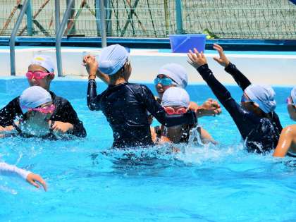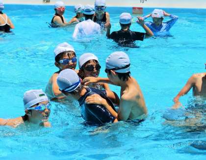 今日は、水慣れ中心の授業ですが、子どもたち一人一人の成長がこれからも楽しみです。