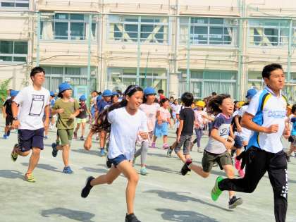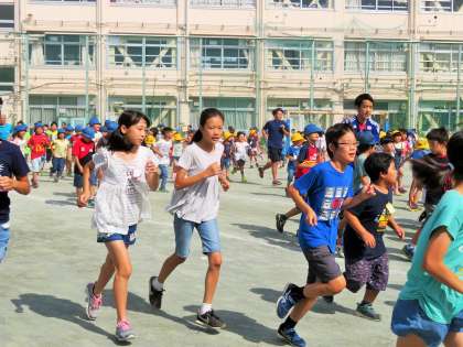 いつも多くの先生たちが走っているので、子どもたちは嬉しそうです!