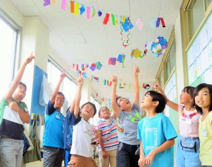 4年生の子どもたちは、色とりどりの短冊に願いごとを書いて廊下に飾りつけています。そこには将来の夢や家族の健康など、思い思いの願いごとが並んでいます。