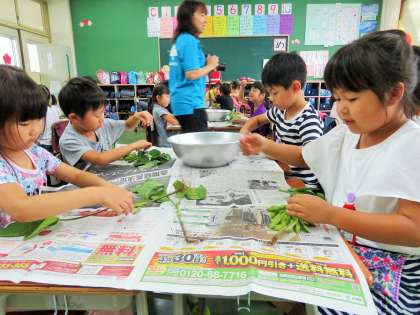 7/6 1年生枝豆のさやもぎ体験ー1