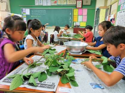 7/6 1年生枝豆のさやもぎ体験ー4