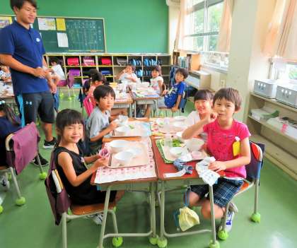 給食の時間に枝豆を見て、子どもたちは嬉しそうに季節の味を楽しんでいました。